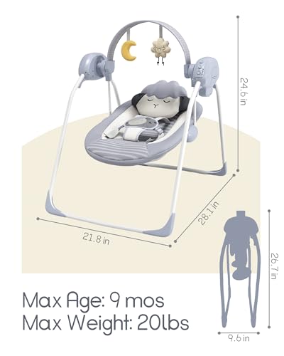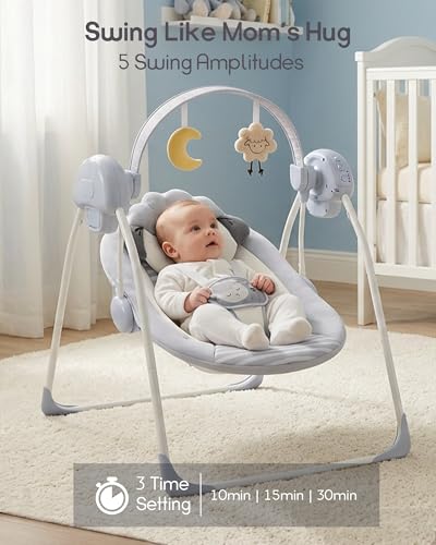 Baby Swings for Infants, Portable Baby Swing with 5-Speed, with Music and Timing for 0-9 Months 6-20 lbs