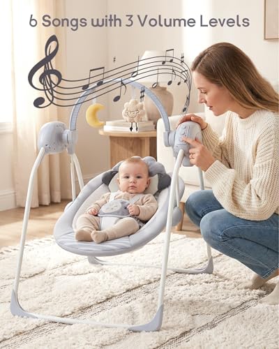 【EASY TO MOVE & STORE】Lightweight and portable, this baby swing can be easily relocated around the house or folded for compact storage when not in use.