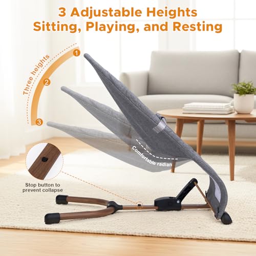 3-in-1 Baby Bouncer: Sit, play, or relax, the baby bouncer seat has 3 adjustable heights suitable for babies at different growth stages, ergonomic design provides the best comfortable angle, and the height can be adjusted with one hand, making it convenient for every parent