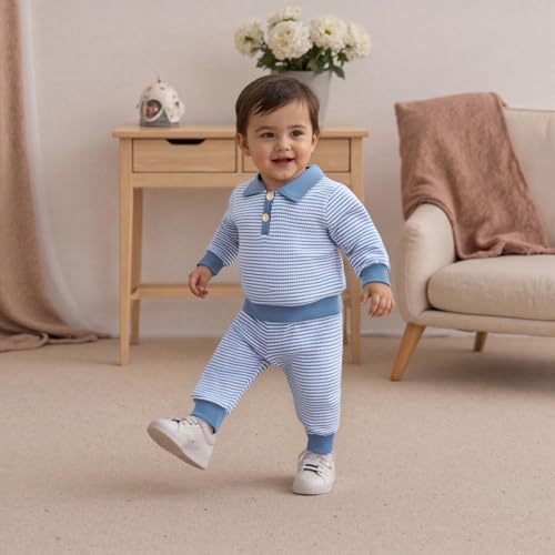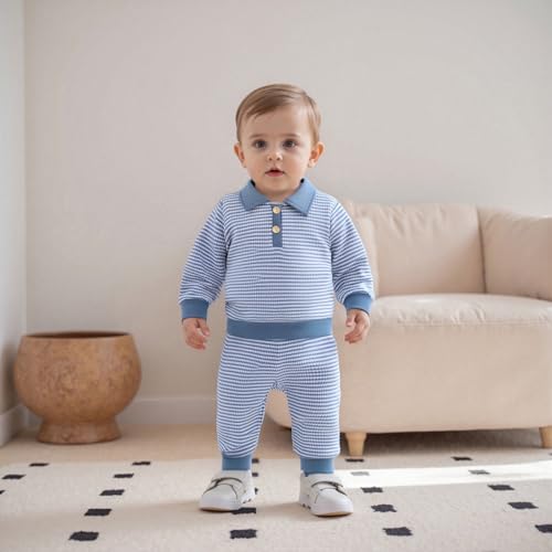 VISGOGO Baby Boy Clothes Toddler Fall Winter Outfit Sweater Toddler Boy Striped Clothes 6 12 18 Months 2 3T 4T Pant Set