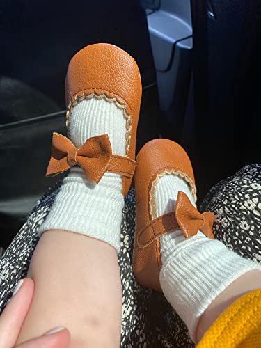 Oamico Infant Baby Girls Mary Jane Flats Non Slip Rubber Sole with Bownot Toddler First Walkers Princess Wedding Dress Shoes