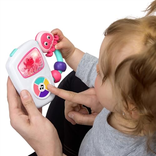 Keep your baby entertained and exploring with the Baby Einstein Ocean Explorers Take Along Tunes Jammin Janet Musical Toy. This pink version of the top-selling Baby Einstein Take Along Tunes Musical Toy engages your baby with dancing lights, 10 melodies, and a 2-ring bead chaser to stimulate baby’s senses and build visual, auditory, and fine motor skills. Explore music alongside Janet the Jellyfish, a loveable character from the Baby Einstein Ocean Explorers YouTube series. Press the large button to toggle through upbeat melodies from the hit series, Baby Einstein Ocean Explorers! Watch the colorful lights dance across the screen to the rhythm of each melody or push the colorful rings along the bead chaser to build fine motor skills. Includes volume control. Easy to grasp and hold. For ages 3+ months. 3rd party safety tested and approved. Includes 2 AA demo batteries. Dimensions: 4.8 x 1.1 x 5 inches. From the #1 Manufacturer of Infant Toys* (*Circana, US Dollar Sales, Jan-Dec ‘24).