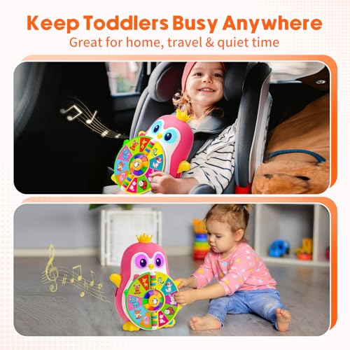 Vahome Musical Penguin Educational Toys for 1,2 Year Old Girl Gifts, Learning Toy for Toddlers 1-3 Yr with 5-Theme Pages, Lights & Music, First Birthday Gift for 1-2 Year Old 12-18 Month Age (Pink)