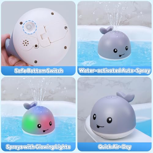 Upgraded Baby Bath Toy: We understand your concerns about water damage and the toy not lasting long enough. But don’t worry! We’ve made some awesome upgrades to address those issues. The whale bath toy now has a power switch(ON/OFF), is double-layer waterproof, and can be recharged. The water spraying time of our rechargeable battery is 4 times that of battery, and don’t need to replace batteries anymore