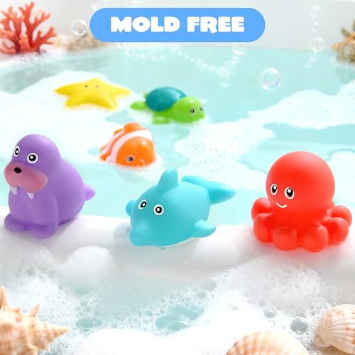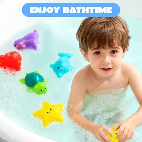 JOYIN 6 Pcs Sea Animal Bath Toys, Sealed & No-Hole & Mold Free Bathtub Toys for Kids, Non-Toxic & Soft Water Vehicles Toys for Boys and Girls, Squeezable & Float on Water, Ideal for Bath & Pool Time