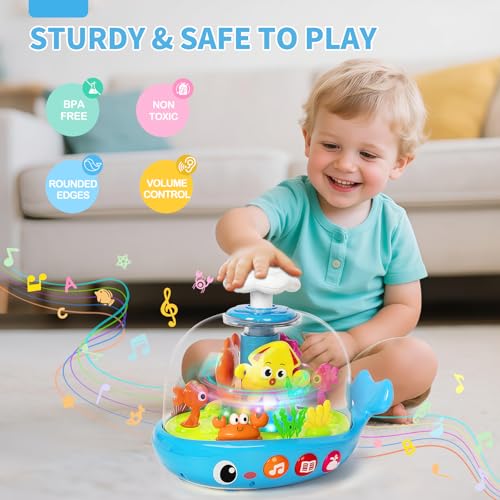Specification: Baby Toys 6-12 Months, Musical Aquarium Infant Toys for 7 8 9 10 11 Months, Early Learning Educational Toy with Sound, Press Glow Spin for Cause and Effect, Christmas Birthday Gifts for Boy Girl