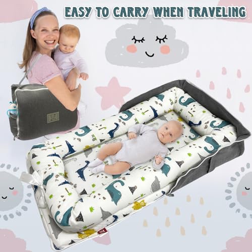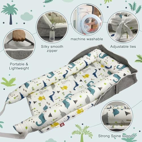 Specification: Baby Lounger, Foldable Portable Infant Lounger, Baby Nest Cover, Suitable for 0-24 Months Newborn Baby Lounger,Home Travel Dual-Purpose Baby Nest(Blue Dinosaur)