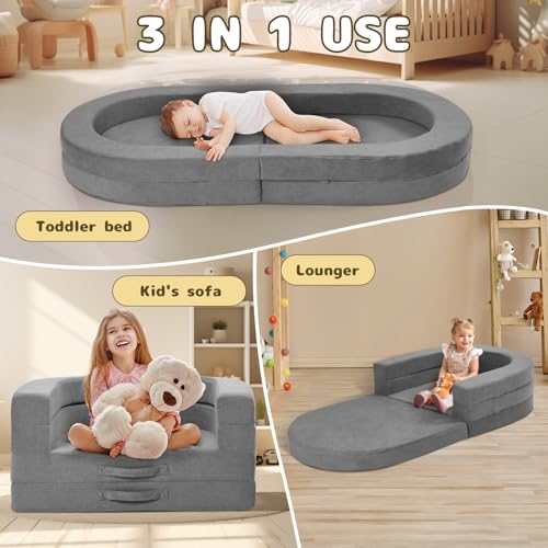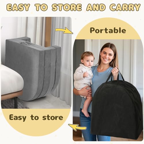 Travel Toddler Bed, 3-in-1 Portable Foldable Toddler Chair,Soft Foam Floor Bed Lounger with Washable Cover,Grey