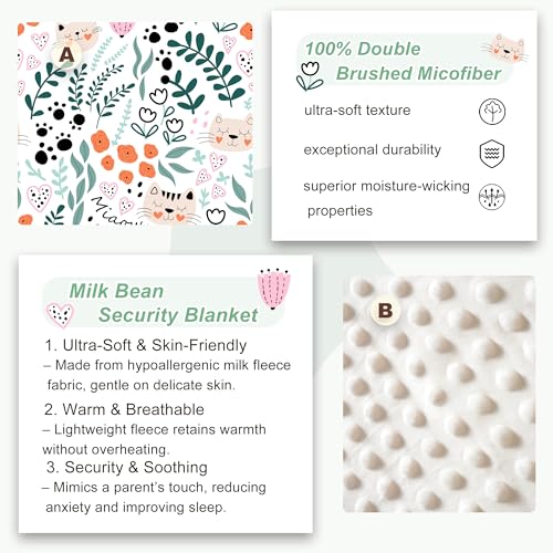 Fantasy Pattern and Minky Dot Soothing Design: Viviland toddler nap mat showcases a pattern featuring a cute cat nestled among vibrant flowers and lush greenery, indulge your little ones in a world of cuteness and comfort; Soft minky dots mimic the sensation of a parent’s touch, helping reduce anxiety during naps or separation