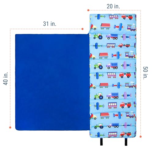 Wildkin Kids Original Nap Mat – Cozy Kids Sleep Mat with Pillow, Ideal for School & Travel – Trains, Planes, and Trucks