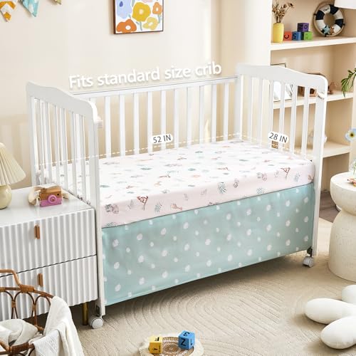 Standard Crib Compatibility: The fitted crib sheet features 8-inch deep pockets designed to fit securely on standard size crib mattresses, ensuring a snug and safe fit throughout the night
