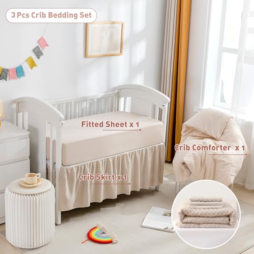 Cokouchyi 3 Piece Bedding Set for Boy Girls, Jacquard Tufted Geometric Crib Set, Includes Skirt, Blanket and Sheet, Baby Bedding, Beige