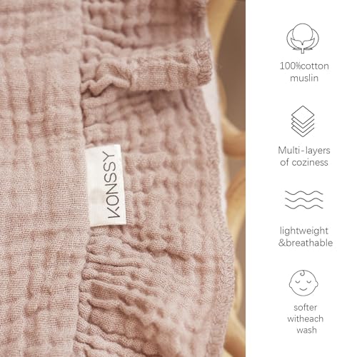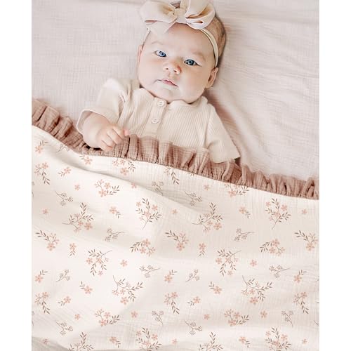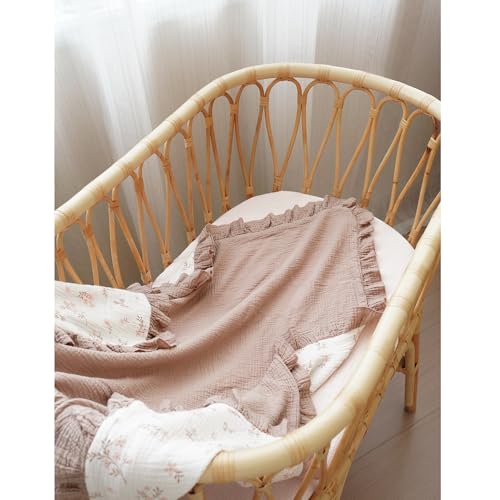 Konssy Flounce Muslin Baby Blankets, Cotton Crib Blanket for Baby Infant Toddler, Super Soft and Lightweight Nursery Blankets 40″x36″ (Petal Dream)