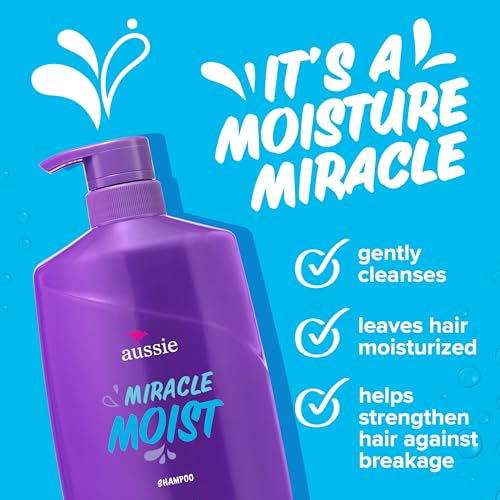 Aussie Miracle Moist Shampoo for All Hair Types – Dry, Curly, Coily, Wavy, Straight – Paraben-Free, Moisturizing, Gentle Cleansing with Avocado & Jojoba Seed Oil, 26.2 Fl Oz