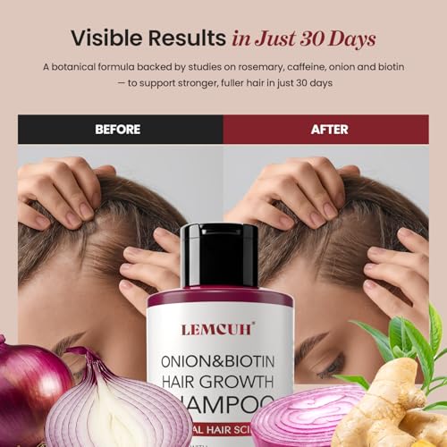 Biotin & Onion Shampoo for Hair Growth: Anti Hair Loss Volumizing Thickening Shampoo for Thinning Hair – Silicone Sulfate-Free Formula with Botanical Nutrients for Sensitive Scalp Pack (12.5floz)