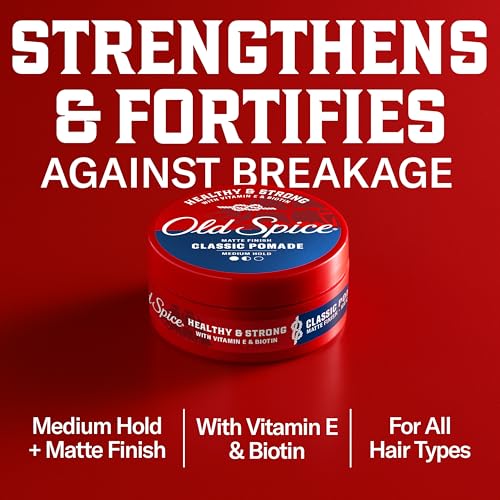 Specification: Old Spice Mens Hair Pomade, Healthy & Strong with Vitamin E & Biotin, Mens Hair Styling Pomade, Medium Hold, Matte Finish, 2.22 oz