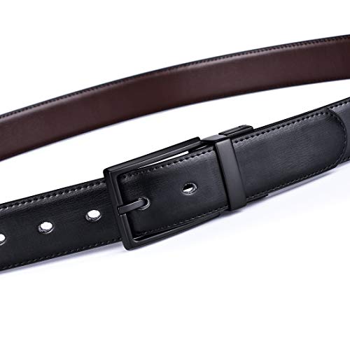 Men’s Dress Belt Leather Reversible 1.25″ Wide Rotated Buckle Gift Box