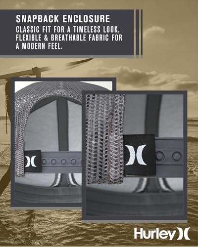 Hurley Men’s Caps – Del Mar Mesh Panel Baseball Cap Trucker Hat – Snap Back Hats for Men