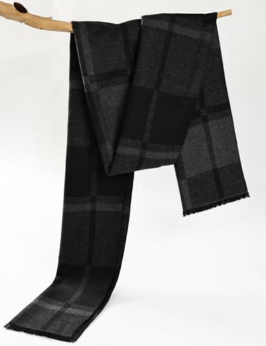 Buauty Winter Scarf for Men Long Warm Soft Cashmere Feel Classic Scarves Striped Plaid Tassel Scarfs Holiday Gift Mens