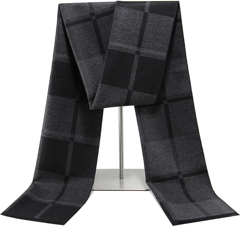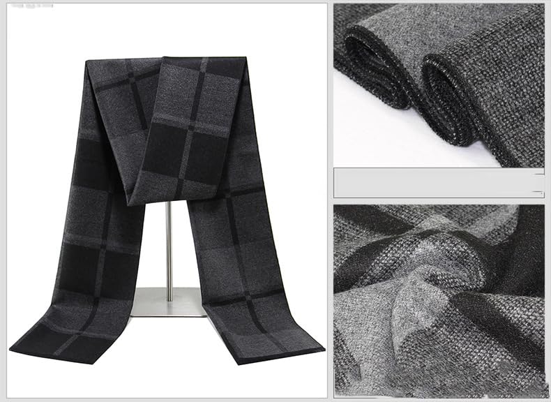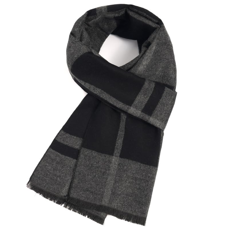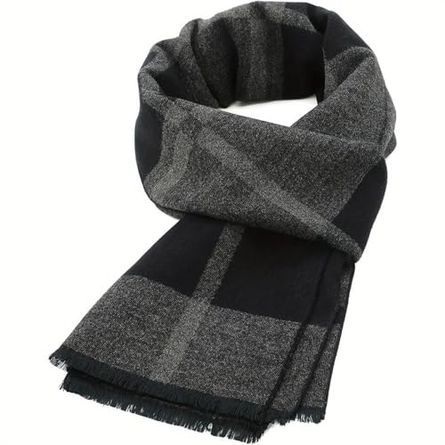 INOGIH Mens Fall Winter Long Plaid Soft Cashmere Scarf with Tassel for Daily Life