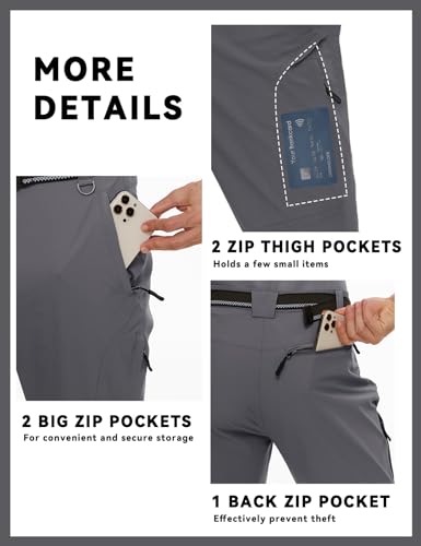 SEVEGO Men’s Hiking Pants Tall Inseam 30″/32″/34″/36″ Lightweight Work Cargo Pants Quick Dry Water Resistant 5 Zipper Pockets