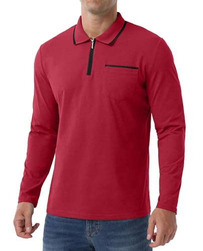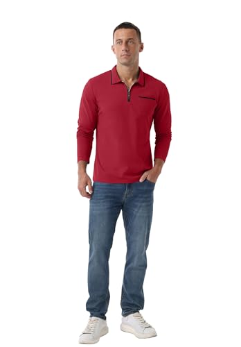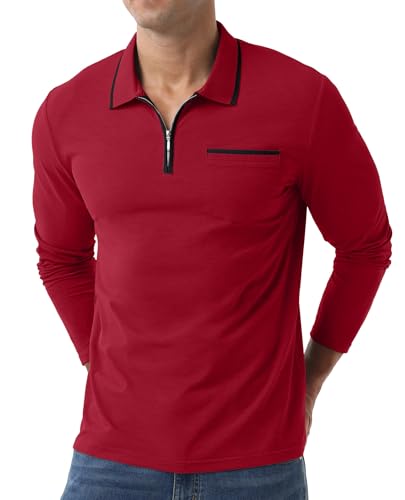 Askdeer Men’s Polo Shirts Zip Long Sleeve Classic T-Shirts Casual Golf Shirts Stylish Collared Tee