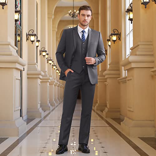 Cooper & Nelson 3 Piece Mens Suit Set, 2 Button Slim Fit Suit for Men, Solid Jacket, Vest, Pants and Tie