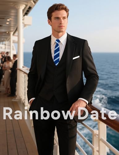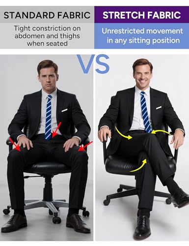 Mens Stretch Suit Slim Fit 3-Piece, 2 Buttons Jacket Vest Adjustable Waist Pants