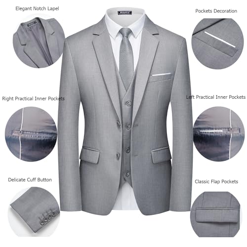 WULFUL Men’s 3 Piece Slim Fit Suit Set Two Button Blazer Jacket Vest Pants Tuxedo Set for Party, Wedding and Business