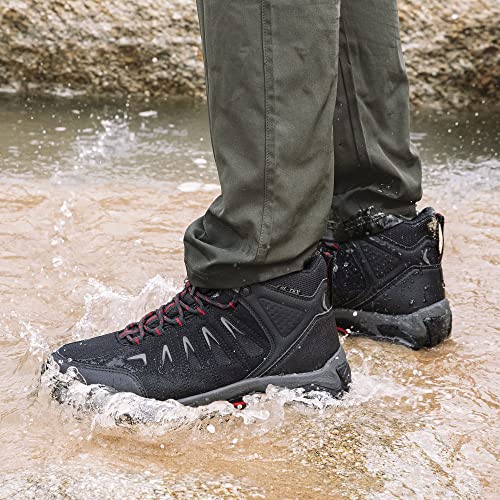 SHULOOK Men’s Waterproof Hiking Boots Non-Slip Lightweight Mid Top Ankle Boot Breathable Hiker Trekking Shoes