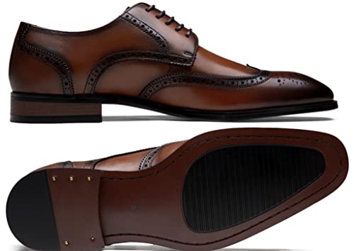 Jousen Men’s Dress Shoes Leather Wingtip Formal Business Oxford Shoes Brogue Retro Derby Dress Shoes for Men