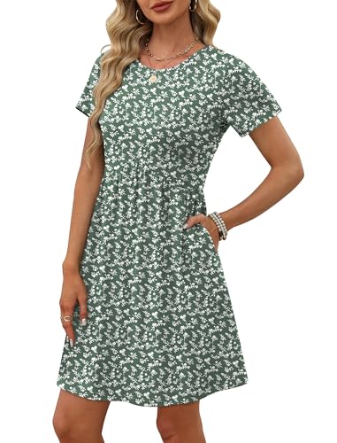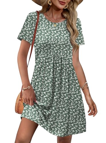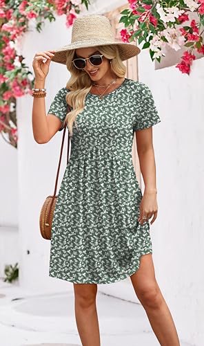 OFEEFAN Spring Dresses for Women 2026 Short Sleeve Crew Neck Casual Dresses Empire Waist Maternity Dress with Pockets