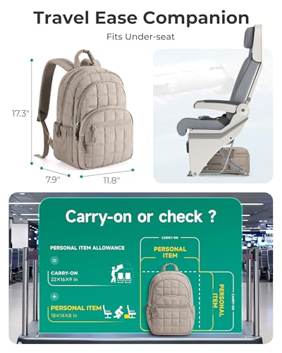 Specification: BAGSMART College Laptop Backpack, Travel Backpack for Women, Quilted Casual Daypack, Water-Resistant Bookbag for 15.6 Inch Laptop, Camel