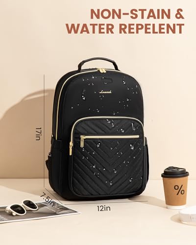 💯【Upgraded Laptop Backpack Women】: Classic V-shaped embroidery thread. Upgraded double LOVEVOOK no-slip metal zippers,water resistant Nylon fabric with polyester lining, ensures long lasting usage. Total of 4 compartments and 16 pockets for your computer,A4 folder,bottles,umbrellas,clothes,work supplies,college supplies and travel essentials.Dimensions: 12″L 17″H 7.5″D, Weight: 1.7lbs.