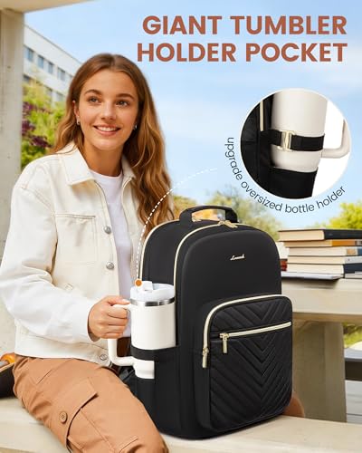 Specification: LOVEVOOK Laptop Backpack for Women with Giant Tumbler Holder 15.6 inch,Designer Travel Backpack Laptop Bag College Backpack,Quilted Work Nurse Teacher Backpack Purse Computer Bag Casual Daypack, Black