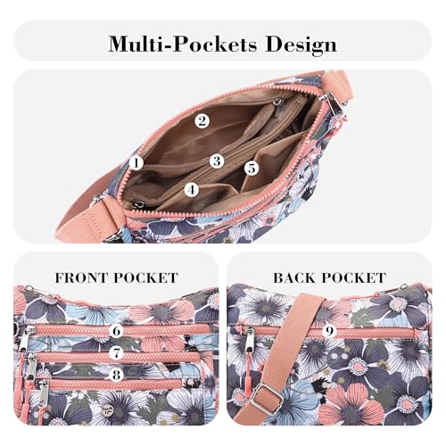 AOCINA Crossbody Bags for Women Multi Pocket Nylon Lightweight Ladies Purses Messenger Shoulder Handbags Satchel Travel Bag