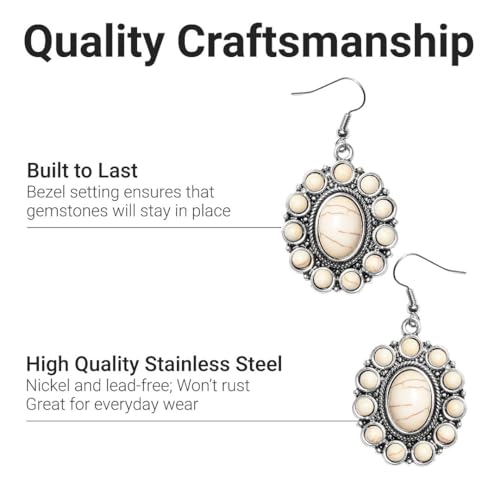 Howlite Jewelry Set – Pink, Yellow, Blue, Green & White Western Jewelry for Women – Turquoise Inspired Necklace, Earrings & Cuff Bracelet Set – Southwestern Chunky Statement Necklace in Stainless