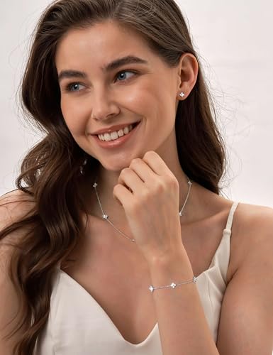ORAZIO Dainty Silver Gold Jewelry Set for Women Trendy 14K Gold Plated CZ Flowers Pendant Choker Necklaces for Women Stud Earrings Clover Link Bracelets Stack Jewelry Gifts for Wedding Prom Brides