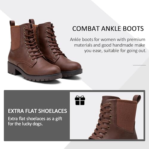 Vepose Womens’ 916 | Ankle Boots | Combat Boots | Lace-up Booties with Inside Zipper