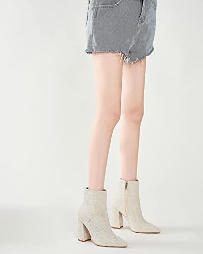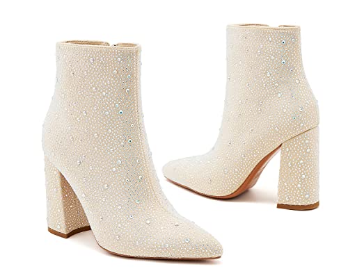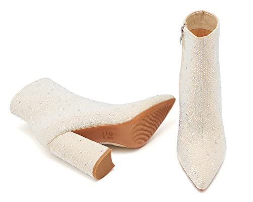 Women’s Sparkling Rhinestone Ankle Boots with Pointed Toe and Block Heel