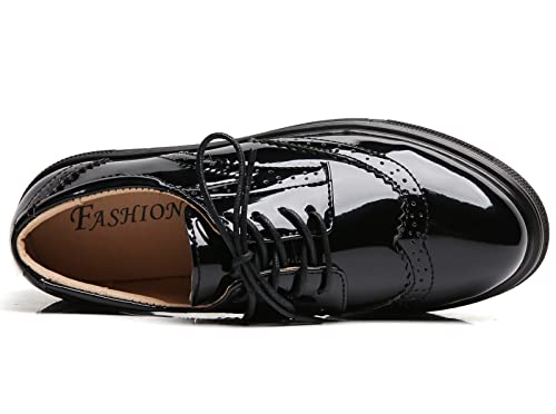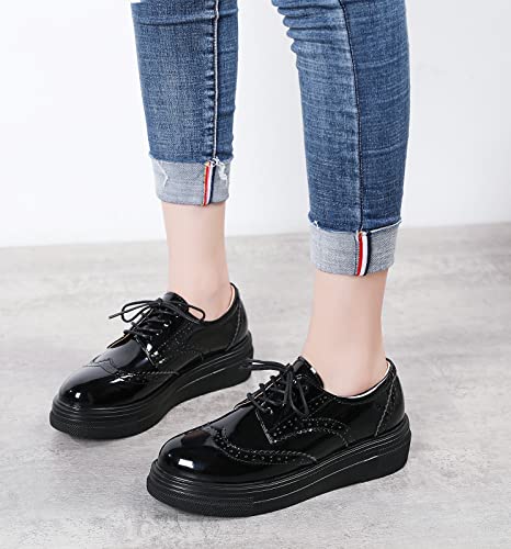 DADAWEN Women’s Platform Lace-Up Comfort Wingtips Square Toe Oxford Shoes Brogues