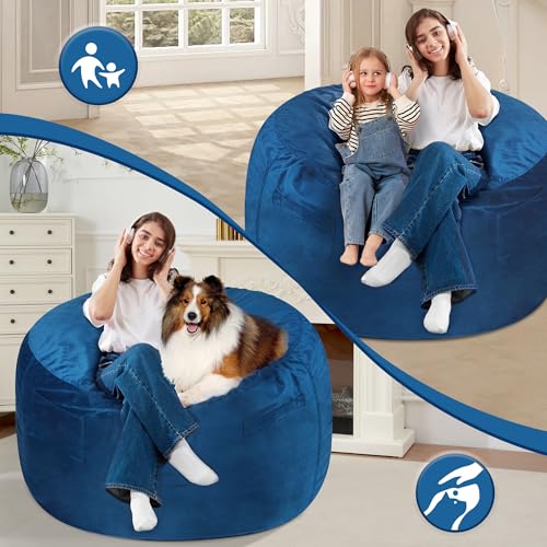 Specification: Homguava 3FT Bean Bag Chair: 3′ Bean Bags with Memory Foam Filled, Large Beanbag Chairs Soft Sofa with Dutch Velvet Cover-Blue