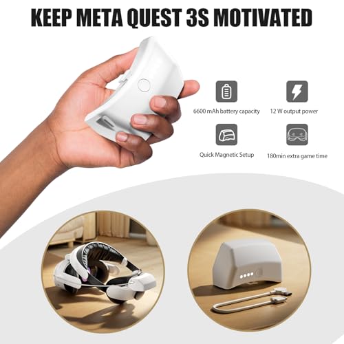 6600mAh Battery for Longer Playtime:Built for Meta Quest 3S with a high-capacity 6600mAh battery that extends your VR time by up to 3 hours—no need to stop mid-game