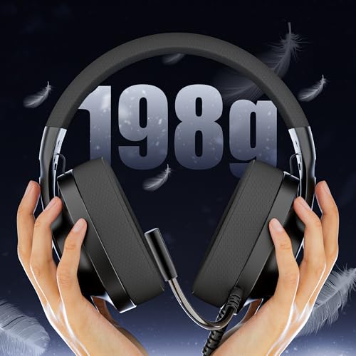 WIRWTRU S30 Gaming Headset with Microphone,198g Lightweight Design, Wired Gaming Headphones for Xbox, Xbox Series X|S, PS5, PS4, Switch, PC, Noise Cancelling Mic, Soft Earmuffs (Black)