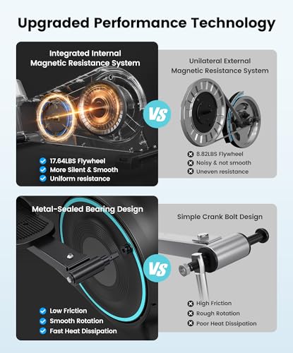【Whisper-Quiet Performance】This elliptical exercise machine features an innovative internal magnetic resistance system that surpasses the traditional unilateral external magnetic resistance system, delivering exceptional quietness (<20 dB), incredibly smooth motion, and unprecedented resistance uniformity. Built for durability and precision, which ensures a stable, responsive, and distraction-free experience