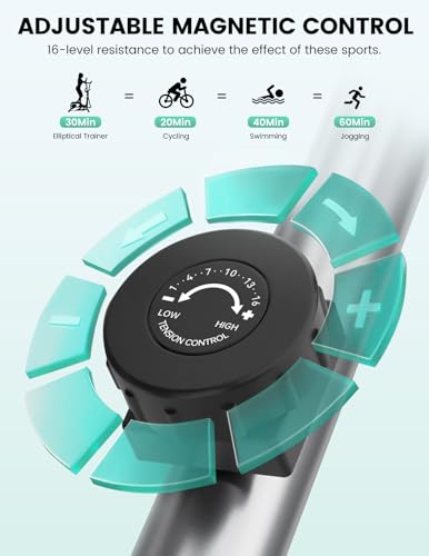 【16 Adjustable Resistance Levels】The elliptical exercise machine comes with 16 adjustable levels of magnetic resistance, so you can enjoy a low-impact workout of varying intensities by easily adjusting the tension knob
