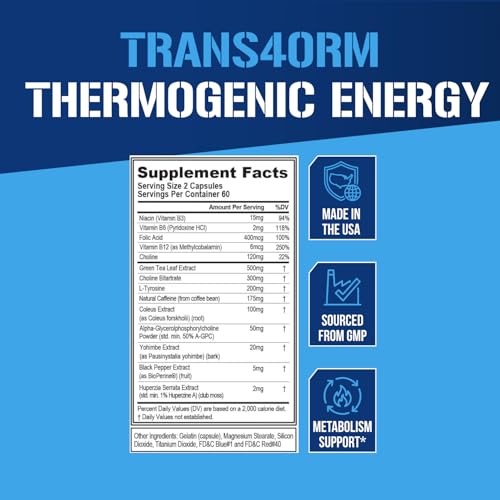 Specification: EVL Thermogenic Fat Burner Support – Fast Acting Weight Loss Energy and Appetite Support – Trans4orm Green Tea Supplement for Men and Women – 60 Servings
