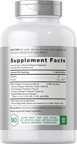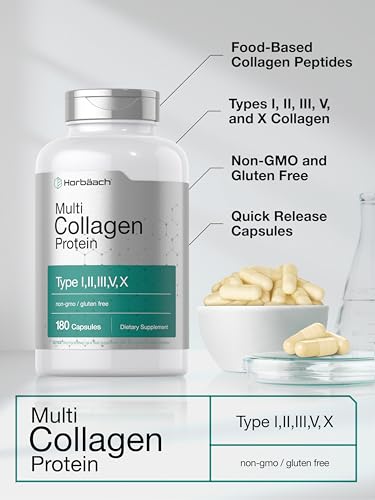 Specification: Horbäach Multi Collagen Protein 2000 mg | 180 Capsules | Hydrolyzed Collagen Type I, II, III, V, X | Keto & Paleo Friendly, Non-GMO, Gluten Free Supplement