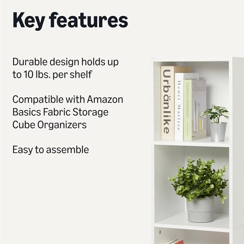 Compatible Storage Solution- Maximize your organization options by pairing with Amazon Basics Fabric Storage Cube Organizers (sold separately). These perfectly-sized cubes transform your bookcase into a customizable storage system for toys, accessories, or office supplies.