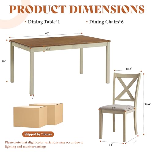 Specification: AMERLIFE 7-Piece Farmhouse Solid Wood Dining Table Set with 6 Upholstered Chairs, 60″ Space Saving Dinner Table & Chairs Set, for Dining Room, Kitchen, Restaurant, Rustic Cream